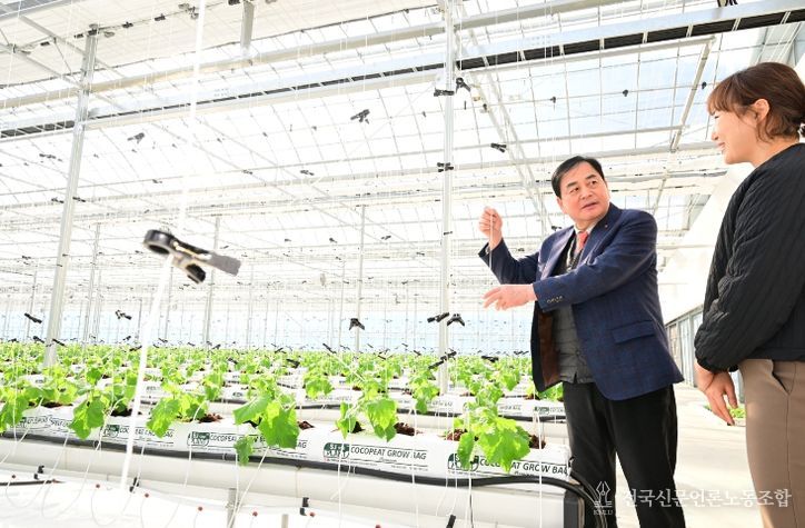 해당 농가는 국비 공모사업 지원을 포함해 총사업비 11억 원을 투입해 4,577㎡ 규모의 스마트팜 온실을 조성했으며, 보온시설, 내·외부 환기시설, 양액기 등 첨단 스마트팜 설비를 구축하여 오이를 재배하고 있다.
