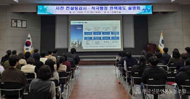 전국신문언론노동조합 강찬희 기자 | 경상남도는 6일 산청군청에서 ‘적극행정 지원을 위한 사전 컨설팅감사․적극행정 면책제도’ 사전 설명회를 개최하고, 2026년 '현장 톡(Talk)! 사전 컨설팅감사'를 본격 추진한다고 밝혔다.