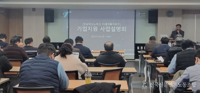전국신문언론노동조합 강찬희 기자 | 경상남도는 6일 양산비즈니스센터에서 도내 자동차부품기업을 대상으로 ‘2026년 자동차부품 기업 지원사업 설명회’를 개최했다고 밝혔다.