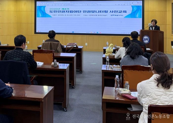 전국신문언론노동조합 강찬희 기자 | 전북특별자치도 인권담당관실은 6일 도청 중회의실에서 도민인권지킴이단 시·군 단장 14명을 대상으로 ‘인권모니터링 전문 강화 교육’을 실시했다.