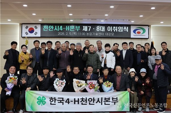 전국신문언론노동조합 강찬희 기자 | 천안시4-H본부는 지난 2월 5일 천안시농업기술센터 대강당에서 김양섭 농업기술센터소장, 농업인단체장 및 4-H회원이 참석한 가운데 ‘천안시4-H본부 제7·8대 회장 이·취임식’을 개최했다고 밝혔다.