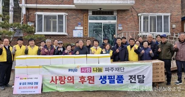 전국신문언론노동조합 김성길 기자 | 파주읍은 지난 5일 사랑나눔파주재단으로부터 250만 원 상당의 쌀과 김치를 기탁 받았다고 밝혔다.