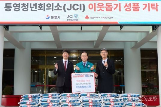 전국신문언론노동조합 강찬희 기자 | 통영청년회의소(회장 박현준)에서는 지난 6일 설 명절을 맞아 지역 내 취약계층 지원을 위해 백미(10kg) 100포(금 350만원 상당)를 통영시(시장 천영기)에 기탁했다.