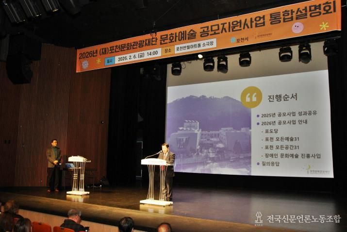 전국신문언론노동조합 김성길 기자 | 포천문화관광재단은 지난 6일 포천반월아트홀 소극장에서 ‘2026년 문화예술 공모지원사업 통합설명회’를 개최했다.