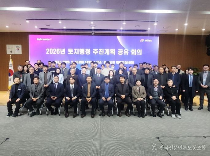 전국신문언론노동조합 강찬희 기자 | 충남도는 10일 도청 대회의실에서 ‘2026년 토지행정 추진계획 공유회의’를 열고, 도민 중심의 토지행정 추진 방향을 공유했다.