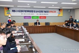 전국신문언론노동조합 강찬희 기자 | 충남 계룡시는 11일 시청 상황실에서 ‘계룡시 수도정비계획(변경) 용역’ 보고회를 개최했다고 밝혔다.