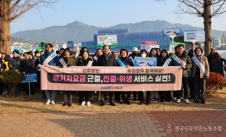 전국신문언론노동조합 강찬희 기자 | 진도군은 12일에 설 명절을 앞두고 고향을 찾는 귀성객과 관광객이 음식점과 공중위생업소를 안심하고 이용할 수 있는 환경을 조성하기 위해 조금시장 일원에서 음식문화 개선, 위생, 친절의 실천과 관련된 운동(캠페인)을 했다.