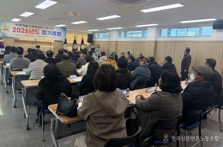 전국신문언론노동조합 강찬희 기자 | 바르게살기운동김천시협의회(회장 성경복)는 12일 11시 바르게살기운동김천시협의회 사무국 2층 회의실에서 2026년 정기총회를 개최했다.
