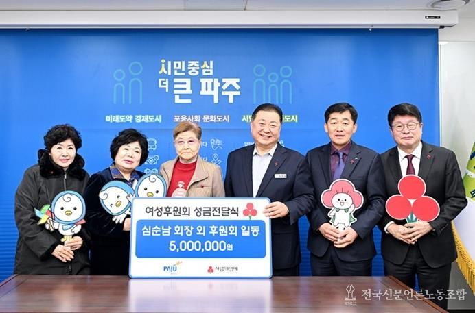 전국신문언론노동조합 김성길 기자 | 파주시는 11일 여성후원회로부터 관내 저소득 취약계층 지원을 위한 성금 500만 원을 기탁 받았다고 밝혔다.