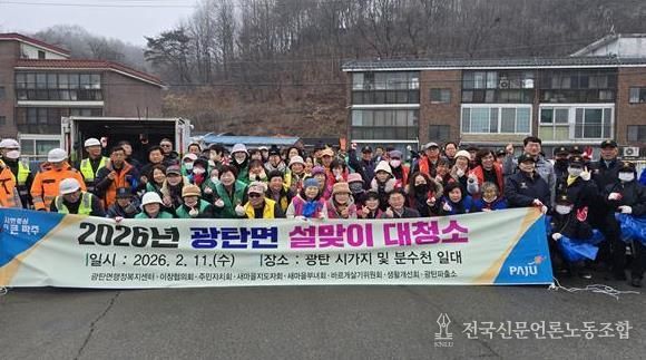 전국신문언론노동조합 김성길 기자 | 파주시 광탄면은 지난 11일 광탄 시가지와 분수천 일대에서 민관 합동으로 설맞이 대청소를 실시했다.