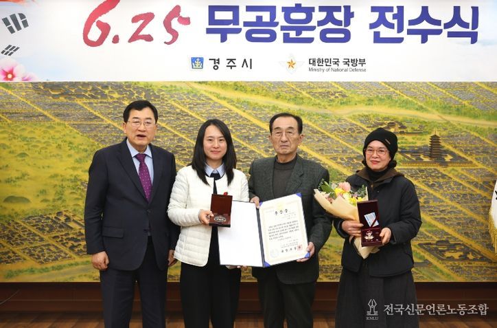 전국신문언론노동조합 강찬희 기자 | 경주시는 지난 12일, 6·25전쟁 당시 무공을 세운 유공자 故 주석종 상사의 유족에게 무공훈장과 훈장증, 기념패를 전수했다.
