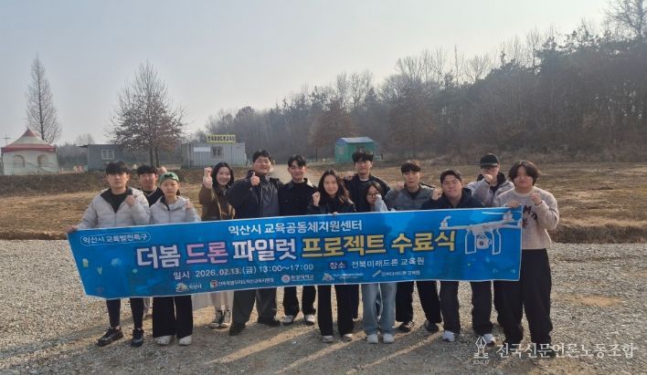 전국신문언론노동조합 강찬희 기자 | 익산시는 13일 교육발전특구 사업의 하나로 추진한 '더봄 드론 파일럿 프로젝트'를 성공적으로 마무리했다.