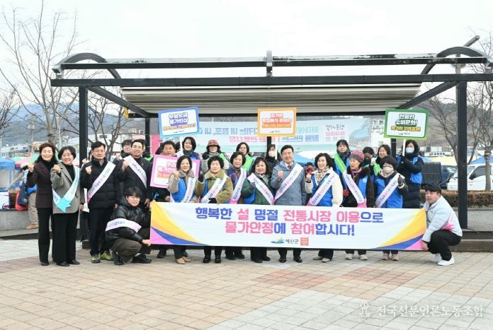 전국신문언론노동조합 강찬희 기자 | 예산군은 설 명절을 맞아 관내 전통시장 정기 오일장 일정에 맞춰 담당부서 직원과 소비자교육중앙회 예산군지회 회원 등이 참여한 가운데 전통시장 장보기와 물가안정 캠페인을 펼쳤다.
