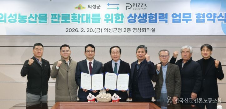전국신문언론노동조합 강찬희 기자 | 의성군은 2월 20일 군청 영상회의실에서 ㈜피자앤컴퍼니(대표 한동효)와 ‘의성 농산물 활용 및 상생협력 업무협약(MOU)’을 체결했다.