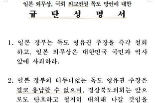 전국신문언론노동조합 강찬희 기자 | 경상북도의회는 20일, 모테기 도시미쓰 일본 외무상이 일본 국회에서 독도 영유권을 주장하는 망언을 한 데 대해 강력히 항의하며, 독도는 대한민국의 고유 영토임을 재차 천명하는 성명서를 발표했다.