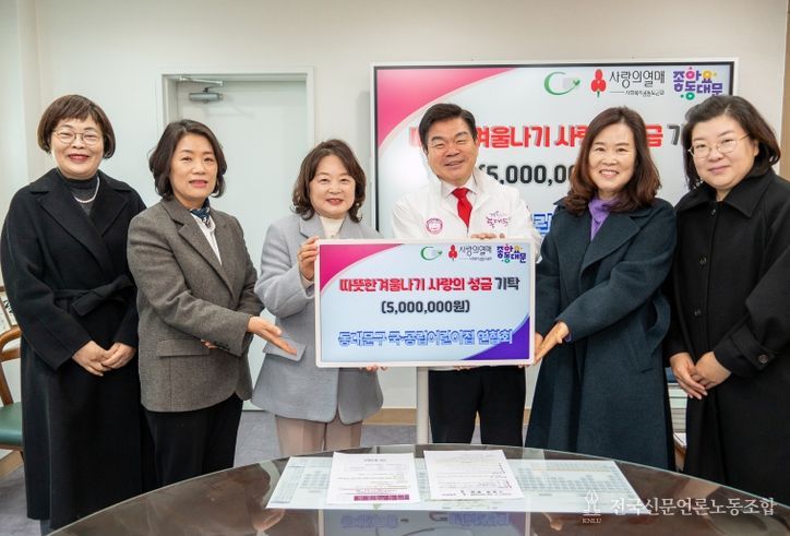 전국신문언론노동조합 강찬희 기자 | 동대문구는 동대문구 국공립어린이집연합회가 '따뜻한 겨울나기 사업'의 일환으로 23일 성금 500만원을 기탁했다고 밝혔다.