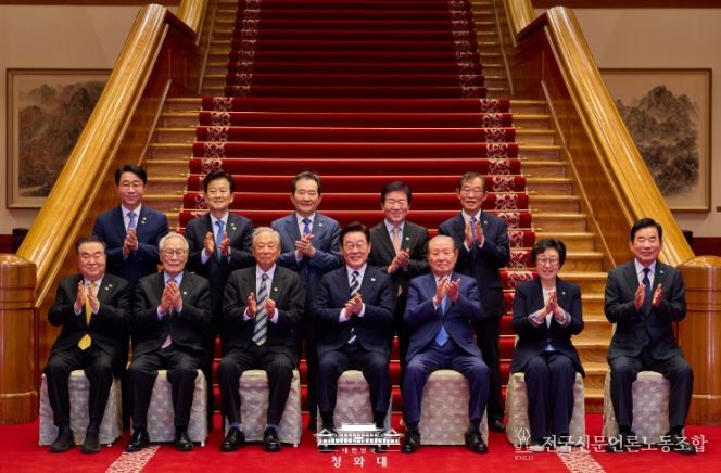 전국신문언론노동조합 강찬희 기자 | 이재명 대통령은 오늘 청와대 본관에서 1시간 45분 동안 민주당 상임고문 열 분과 오찬 간담회를 가졌다. 참석자는 권노갑 고문과 김원기·임채정·문희상·김진표·정세균·박병석 전 국회의장, 한명숙 전 총리, 정동영 통일부 장관, 이용득 고문이다.