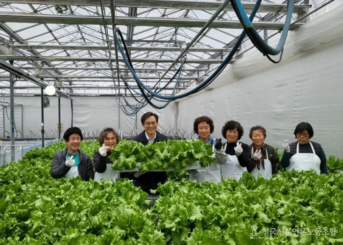 전국신문언론노동조합 강찬희 기자 | 영암군이 24일 덕진면 영보마을 어르신들과 함께 영보온실에서 가꾼 상추를 첫 수확해 지역농협 로컬푸드 매장에 판매했다.