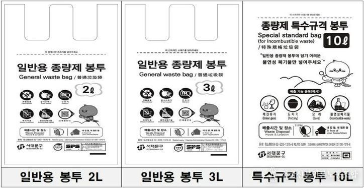 전국신문언론노동조합 강찬희 기자 | 서대문구가 3월부터 소용량 일반용 종량제 봉투 2L, 3L 및 특수 규격(마대) 봉투 10L를 신규 판매한다.