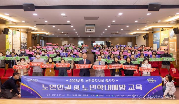 전국신문언론노동조합 강찬희 기자 | 칠곡군은 지난 25일 교육문화회관 평생학습관에서 관내 노인복지시설 47개소 종사자 130여명을 대상으로 ‘2026년도 사회복지시설 종사자 노인인권 및 노인학대예방 교육’을 실시했다.