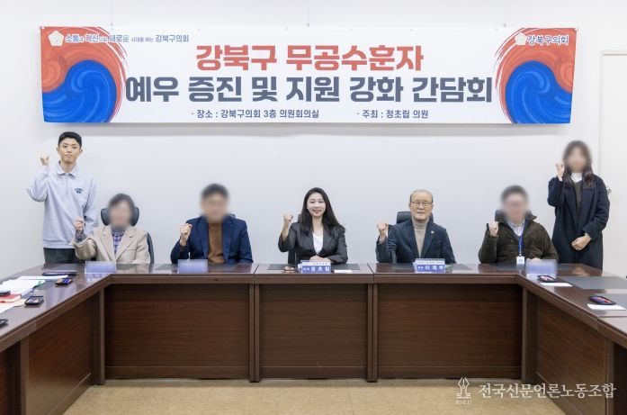 전국신문언론노동조합 강찬희 기자 | 서울특별시 강북구의회 정초립 의원(미아동·송중동·번3동, 국민의힘)은 최근 대한민국 무공수훈자회 강북구지회(회장 이제우)와 간담회를 갖고, 지역 보훈단체의 현안과 예우 증진 방안에 대해 논의했다.