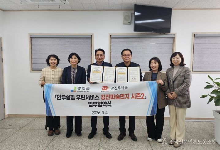 전국신문언론노동조합 강찬희 기자 | 강진군이 작년에 이어 올해에도 행정안전부 공모사업 ‘2026년 읍면동 스마트 복지‧안전서비스 개선 모델 개발 지원사업’의 ‘안부살핌 우편서비스’ 부문에 선정돼 국비 1천만 원과 우체국공익재단 8백만 원을 포함한 총 2천 8백만 원 규모의 예산을 투입해 촘촘한 복지 안전망 구축에 나섰다.