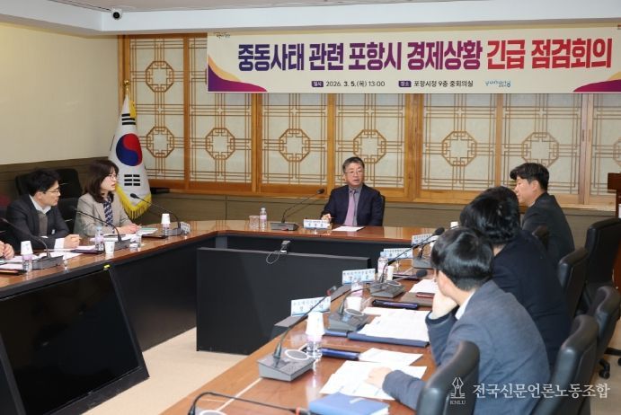 전국신문언론노동조합 강찬희 기자 | 포항시는 5일 ‘중동 사태에 따른 긴급 경제 상황 점검회의’를 열고, 최근 급변하는 국제 정세가 지역 핵심 산업과 민생경제에 미칠 타격을 최소화하기 위한 비상 대책 마련에 나섰다.