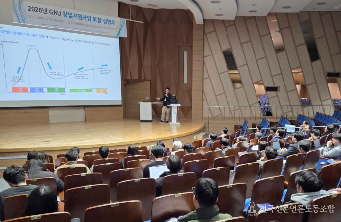 전국신문언론노동조합 강찬희 기자 | 경상국립대학교(GNU) 창업지원단은 3월 5일 오후 가좌캠퍼스 GNU 국제관 파이어니어 오디토리엄에서 ‘2026년 GNU 창업지원사업 통합설명회’를 성황리에 개최했다.