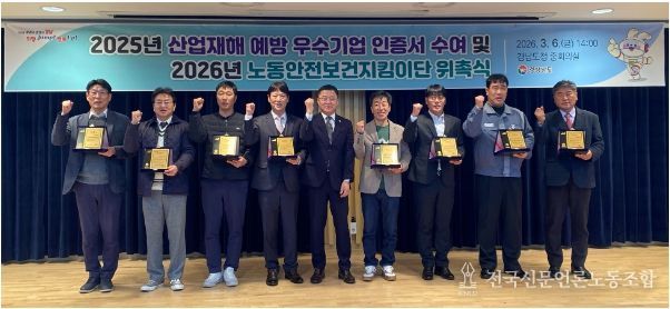 전국신문언론노동조합 강찬희 기자 | 경상남도는 도내 사업장의 산업재해 예방을 위한 노동안전보건지킴이단 24명을 선발하고 6일 위촉식을 개최했다고 밝혔다.