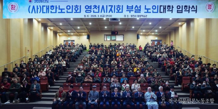 전국신문언론노동조합 강찬희 기자 | 영천시는 대한노인회 영천시지회 부설 노인대학이 6일 평생학습관 우석홀에서 노인대학생, 기관단체장 등 350여 명이 참석한 가운데 ‘제31기 입학식’을 개최했다고 밝혔다.