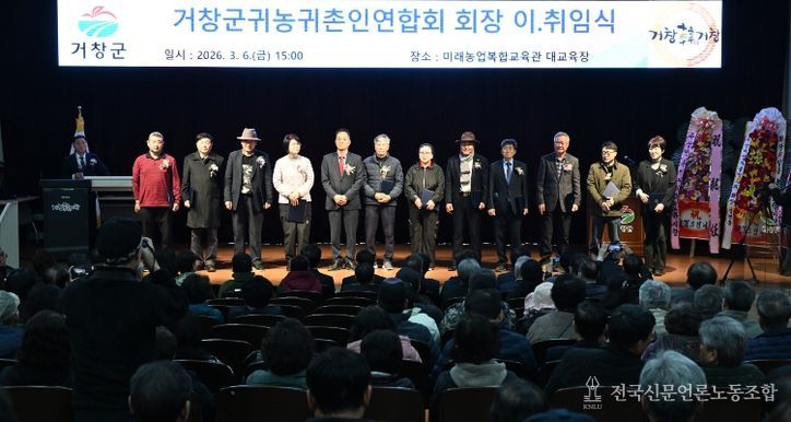전국신문언론노동조합 강찬희 기자 | 거창군귀농귀촌인연합회는 지난 6일, 거창군농업기술센터 미래농업복합교육관에서 내빈과 연합회 회원 등 150여 명이 참석한 가운데 제7대·8대 회장 이·취임식을 개최했다.
