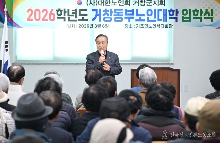전국신문언론노동조합 강찬희 기자 | (사)대한노인회 거창군지회(지회장 강창남)는 6일, 지역 어르신들의 활기찬 노후와 평생학습 기회 확대를 위한 ‘2026학년도 노인대학 입학식’을 개최했다.
