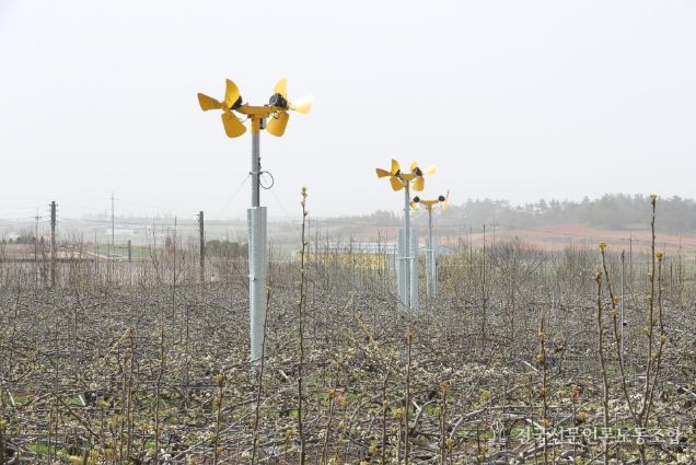 방상팬은 철제 파이프 위에 설치된 전동 모터에 날개를 부착, 온도가 내려갈 때 모터를 가동해 송풍하는 장치이다. 미세살수장치는 기온이 영하일 때 스프링클러로 물을 뿌려 얼음으로 변할 때 나오는 잠열을 이용해 꽃눈과 꽃을 보호할 수 있다. 통로형 온풍 시설은 과수원 중앙에 온풍기를 설치하고 따뜻한 바람을 내보내는 통로를 나무가 심어진 줄에 배치, 과수원 내부 온도를 2∼3도 올리는 장치이다.
