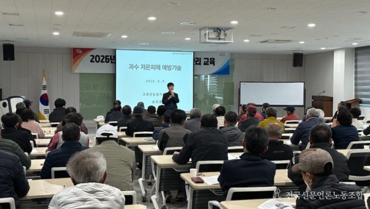 이번 교육은 최근 기후변화로 봄철 이상저온 현상이 잦아지면서 과수 개화기 저온 피해가 매년 반복적으로 발생함에 따라, 농업인들이 현장에서 실질적으로 활용할 수 있는 과원관리 방법을 공유하고 과수 저온 피해를 최소화하기 위해 마련됐다.