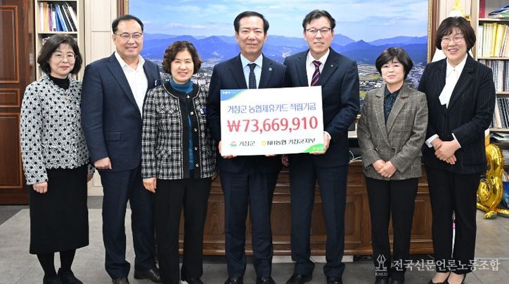 전국신문언론노동조합 강찬희 기자 | 거창군은 지난 9일, NH농협은행 거창군지부에서 거창군청을 방문해 거창군 제휴카드 적립기금 7,366만 원을 전달했다고 밝혔다.