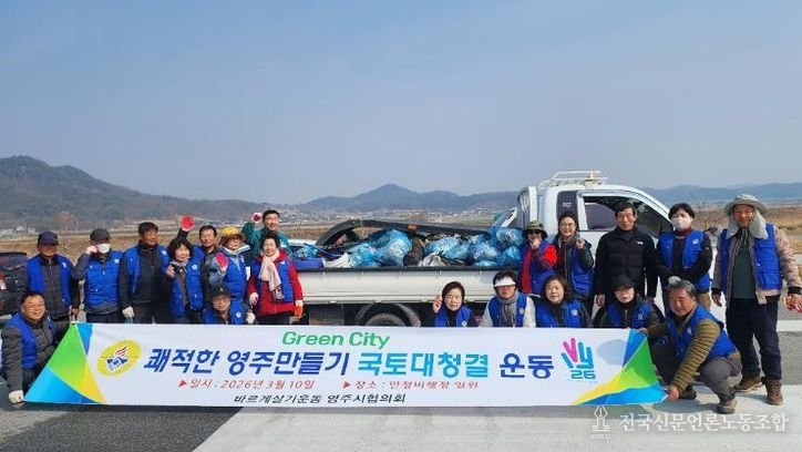 이번 국토대청결운동은 다가오는 봄철을 맞아 지역 환경을 정비하고 시민들에게 깨끗한 생활환경의 중요성을 알리기 위해 추진됐으며, 회원들은 한마음으로 주변 환경을 정비하며 쾌적한 영주 만들기에 동참했다.