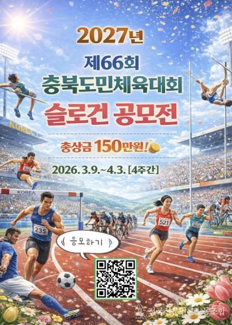 전국신문언론노동조합 김성길 기자 | 충북 보은군이 2027년 보은에서 개최되는 '제66회 충북도민체육대회'의 성공적인 개최와 참여 분위기 조성을 위해 대회 슬로건 공모전을 진행한다고 11일 밝혔다.
