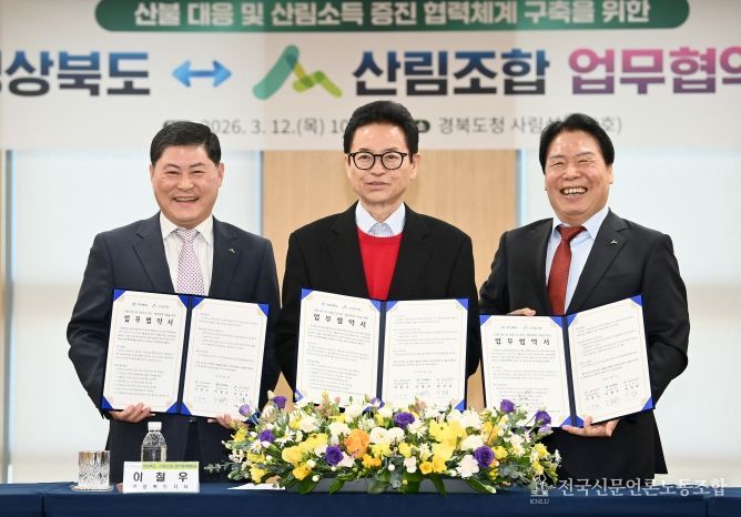 전국신문언론노동조합 강찬희 기자 | 경상북도는 3월 12일 도청 사림실에서 산림조합과 ‘산불 대응 및 산림소득 증진을 위한 업무협약(MOU)’을 체결하고 산림 재난 대응과 임산업 발전을 위한 협력체계를 구축했다.