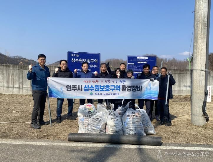 전국신문언론노동조합 강찬희 기자 | 원주시상하수도사업소 직원들이 지난 12일 소초면 장양리에 위치한 원주취수장의 상류 상수원보호구역에서 환경정비 활동을 실시했다.