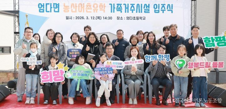 전국신문언론노동조합 강찬희 기자 | 전남 함평군은 “지난 12일 엄다면 엄다초등학교에서 ‘농산어촌유학 가족거주시설 입주식’을 열고 입주 가정의 새로운 시작을 축하했다”고 13일 밝혔다.