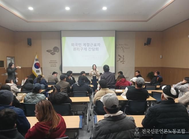 전국신문언론노동조합 강찬희 기자 | 고흥군은 지난 12일 고흥분청문화박물관 강당에서 관내 외국인 계절근로자의 인권 보호와 실질적인 권리구제를 위해 ‘외국인 계절근로자 권리구제 간담회’를 개최했다고 밝혔다.