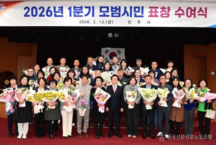 전국신문언론노동조합 강찬희 기자 | 진주시는 13일 시청 시민홀에서 지역사회 발전에 기여하고 자발적인 봉사와 나눔을 실천한 시민 90명을 대상으로 ‘2026년 1분기 모범시민 표창 수여식’을 개최했다.