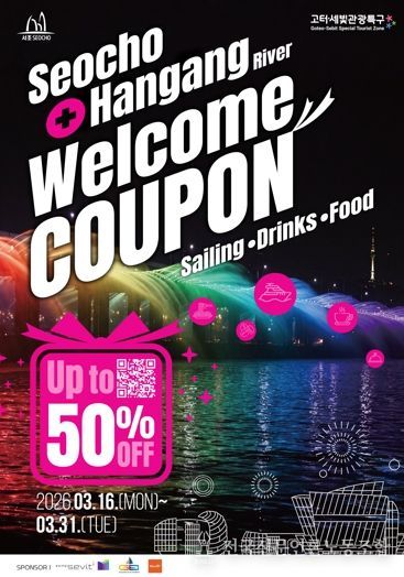 이번 이벤트는 관광객이 서초구 고터·세빛 관광특구 내 주요 명소인 고투몰, 반포한강공원, 피카소벽화거리 등을 방문해 인증사진을 촬영한 뒤 필수 해시태그(#seocho, #rainbowfountain 등)와 함께 개인 SNS에 게시하고, 이를 고터·세빛 관광안내센터에 제시하면 선착순 3,210명에게 ‘서초 웰컴쿠폰’을 제공한다. 쿠폰을 이용하면 최대 50% 할인 혜택을 받을 수 있다. 구는 SNS 인증 이벤트를 통해 내·외국인 관광객들에게 다양한 할인 혜택을 제공하고 관광특구 방문을 유도해 관광특구 일대를 대한민국을 대표하는 관광 명소로 알린다는 계획이다.