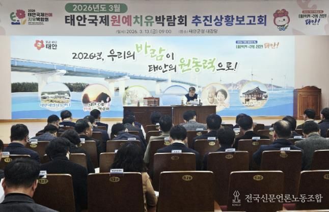 군은 13일 군청에서 이주영 부군수 주재로 ‘2026 태안국제원예치유박람회 3월 추진상황 보고회’를 열고 연계사업과 홍보, 관람객 수용 대책 등 전반적인 준비 상황을 점검하며 성공 개최를 위한 막바지 대응 방안을 논의했다고 밝혔다.