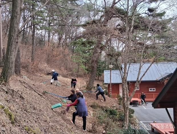 이번 환경정비는 가을철에 쌓인 낙엽으로 인한 봄철 산불을 예방하기 위해 산책로 주변 낙엽과 부러진 가지를 제거하는 등 정비 활동을 실시했으며, 시설물 점검과 쓰레기 수거 등 주변 환경 정화 활동도 함께 진행했다.