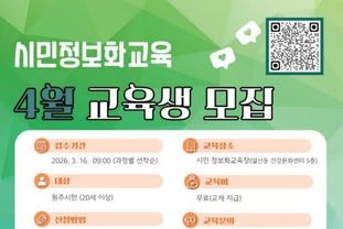 지정면 서부권 시민정보화교육장에서는 4월 1일부터 28일까지 5주간 ▲엑셀 실습 ▲인공지능(AI) 비서로 만드는 디지털 부업 ▲3040을 위한 제미나이 실전 마스터 등 총 3개 과정이 진행된다.