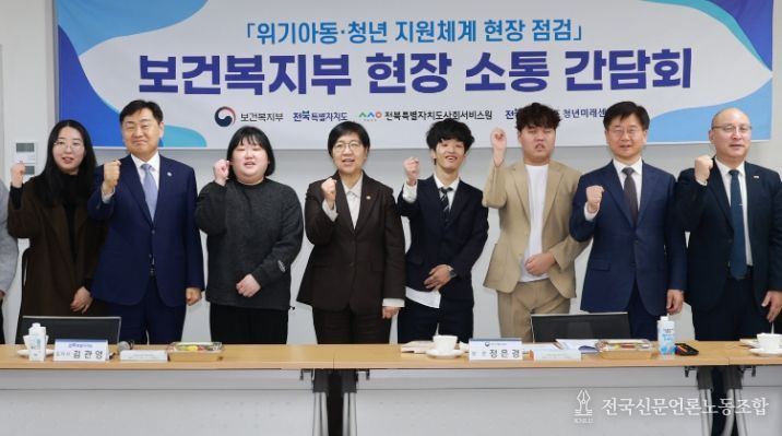 전국신문언론노동조합 강찬희 기자 | 전북특별자치도가 16일 전북 청년미래센터에서 정은경 보건복지부 장관과 김관영 전북자치도지사가 참석한 가운데 오는 26일 시행되는 '가족돌봄 등 위기아동청년 지원에 관한 법률' 운영 현황을 점검하고, 현장 관계자 및 청년 당사자들의 의견을 듣는 간담회를 개최했다. 이번 방문은 전북이 보건복지부가 추진 중인 위기청년 전담지원 시범사업에서 성과를 내고 만큼, 운영 실태를 직접 확인하기 위해 마련됐다.