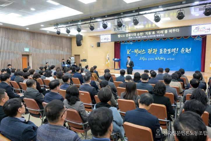 전국신문언론노동조합 강찬희 기자 | 순천시는 지난 16일 시청 대회의실에서 전 직원을 대상으로 ‘웰니스 관광 시대 순천! 치유로 미래를 바꾸다’라는 주제로 보고회를 개최하고, 순천의 독보적인 자원을 활용한 미래 관광 정책 비전을 공유했다.