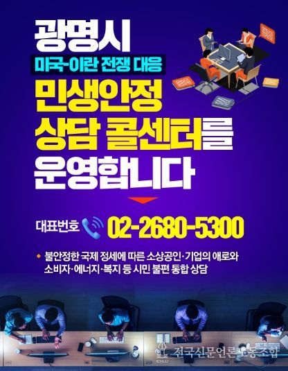 전국신문언론노동조합 강찬희 기자 | 광명시가 미국-이란 전쟁으로 불안정한 국제 정세 속에서 민생의 목소리를 보다 신속하게 접수하고 대응하기 위해 관련 민원을 통합 접수하는 ‘광명 민생안정 상담 콜센터’를 본격 가동한다고 17일 밝혔다.