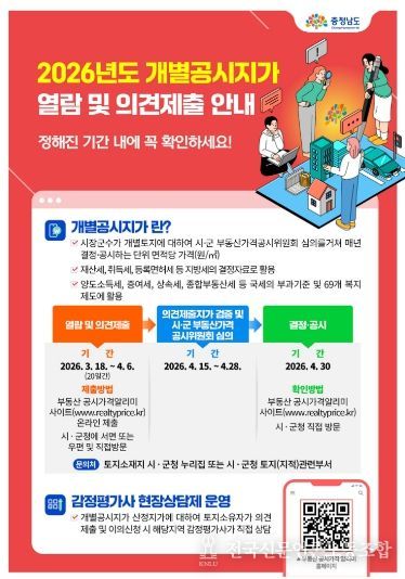 임택빈 도 토지관리과장은 “개별공시지가는 지방세 과세, 국·공유 재산의 사용료 산정 등에 활용되는 만큼 열람 기간 내 개별공시지가를 꼭 확인하길 바란다”라고 말했다.